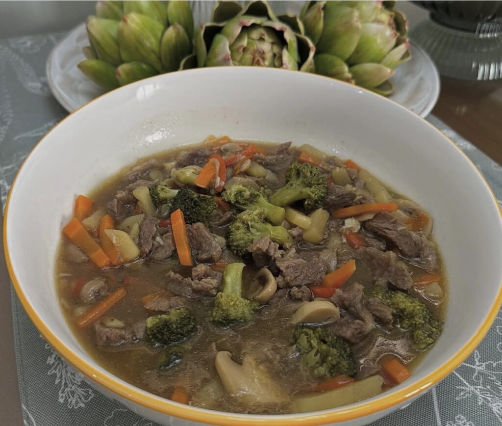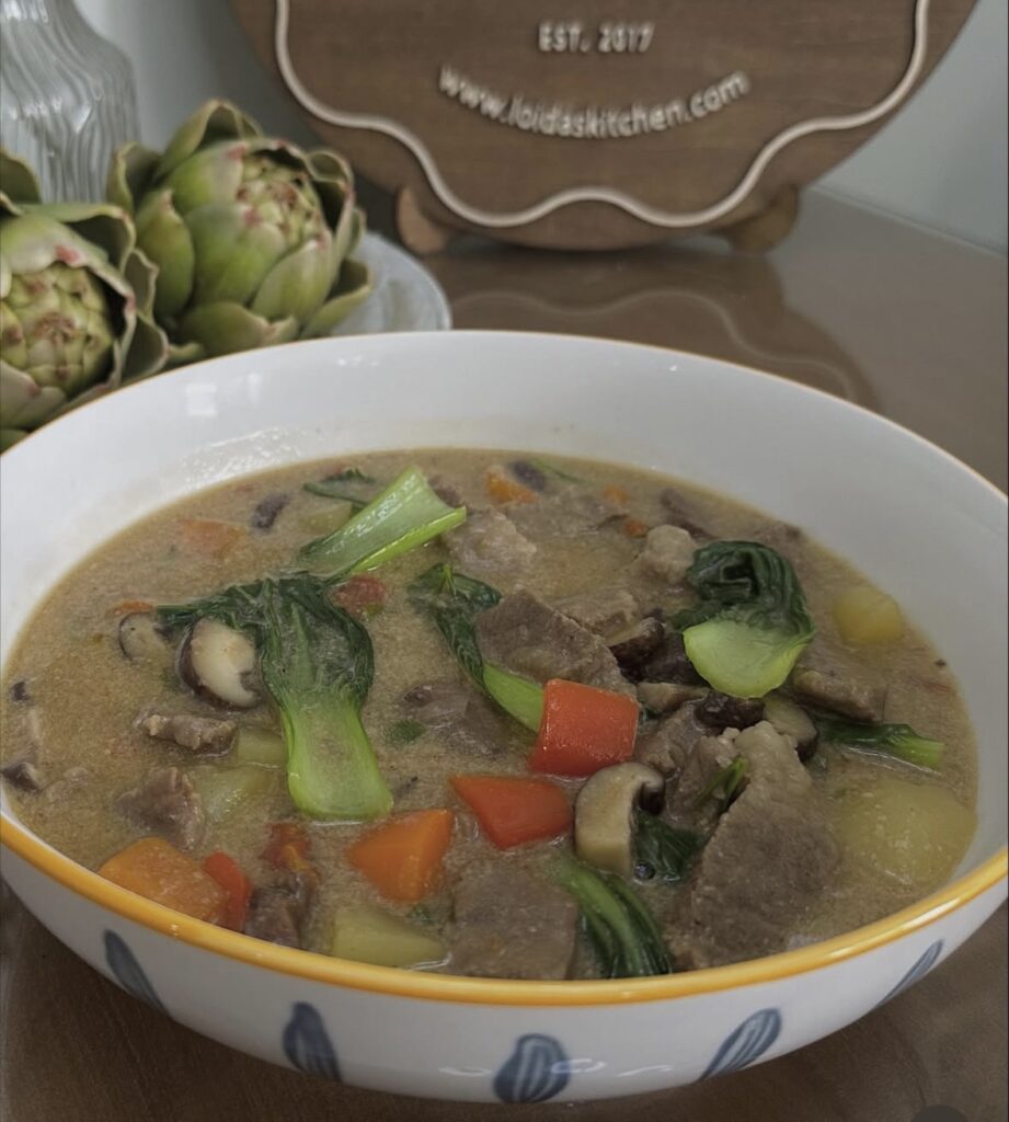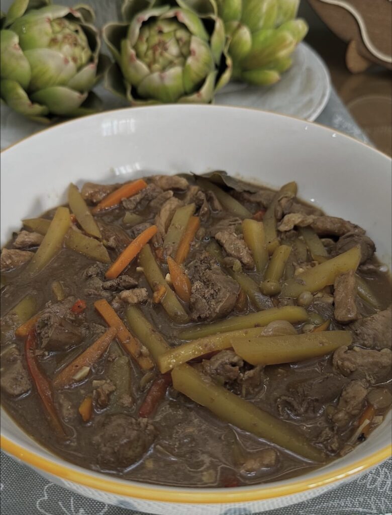 Our teenager foodie has a very versatile palate. And yes, he likes Italian, Korean, Chinese, and a lot more cuisines. He, of course, likes Filipino dishes such as dinuguan, laing, Bicol express, kare-kare, menudo, etc. — those usually served in parties and fiestas. In our meat dishes, however, I try to incorporate as much veggies as possible. As such, I deviate from the classic recipes sometimes just like in these chicken stroganoff and beef stew dishes.