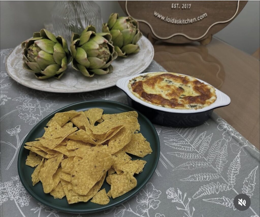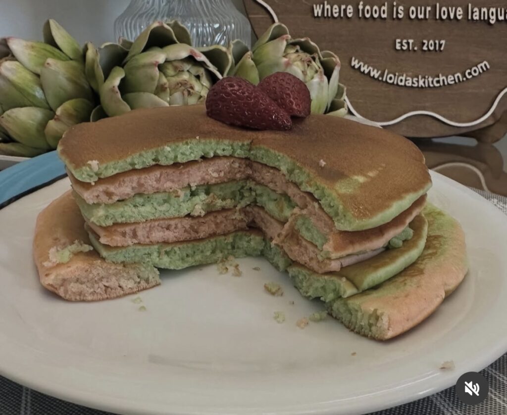 Our teenager foodie prepared this green-and-pink layered pancakes for breakfast (with a little help from me, mostly in plating). He also requested that we have the baked spinach dip with chips for snacks.